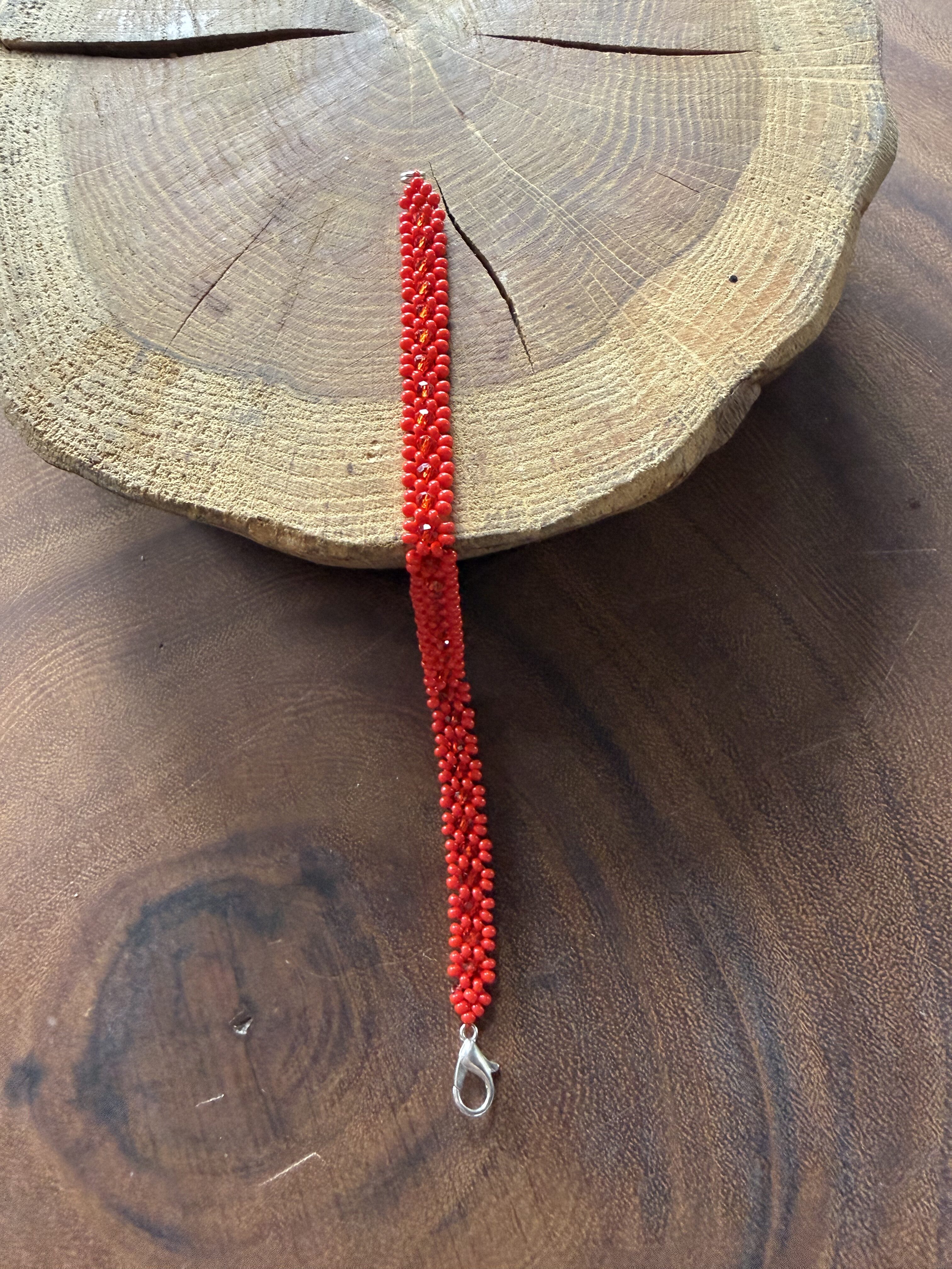 Bransoletka ze szklanych koralików w kolorze czerwonym
