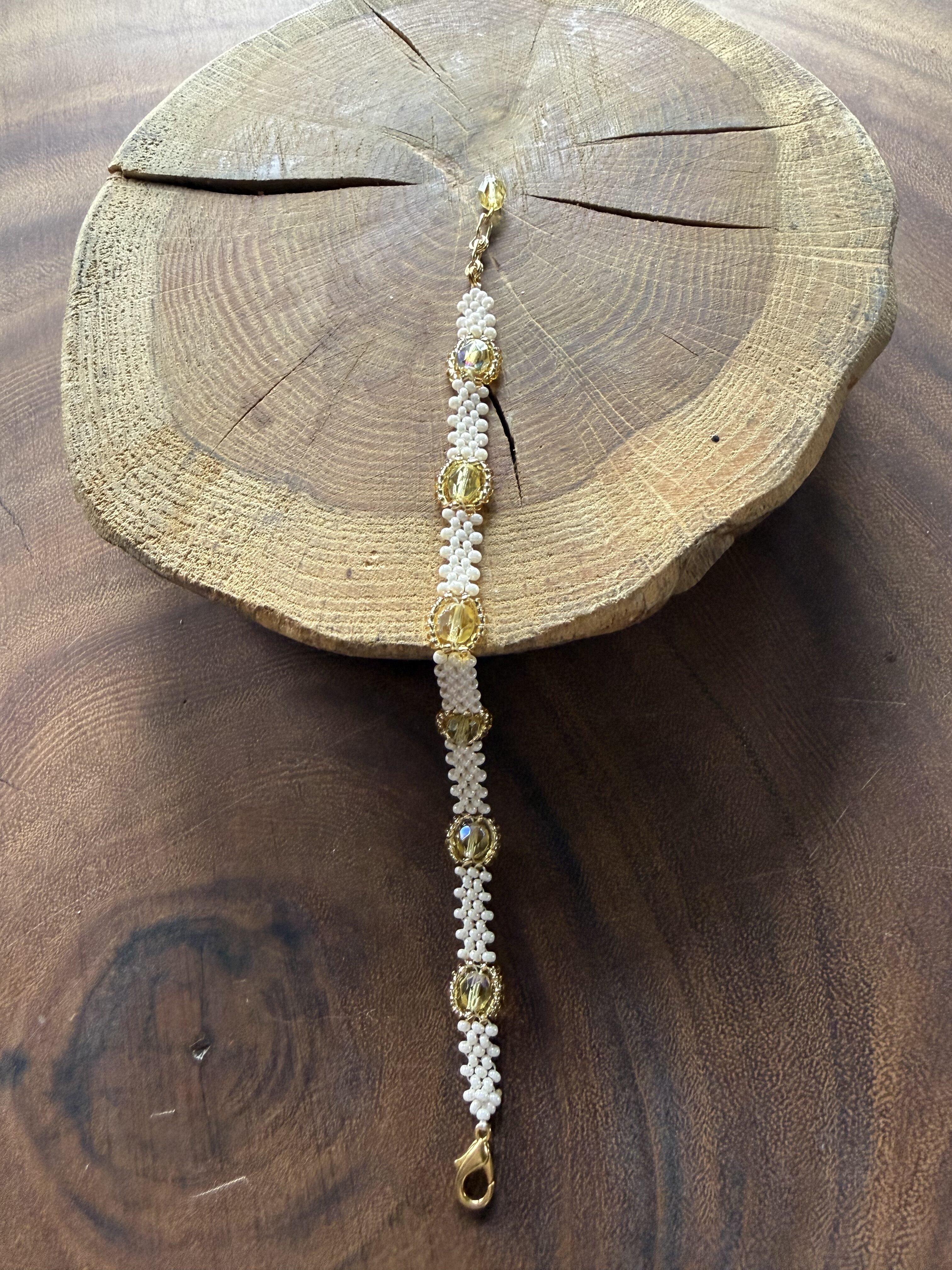 Krystałkowa bransoletka z koralików w kolorze mlecznym