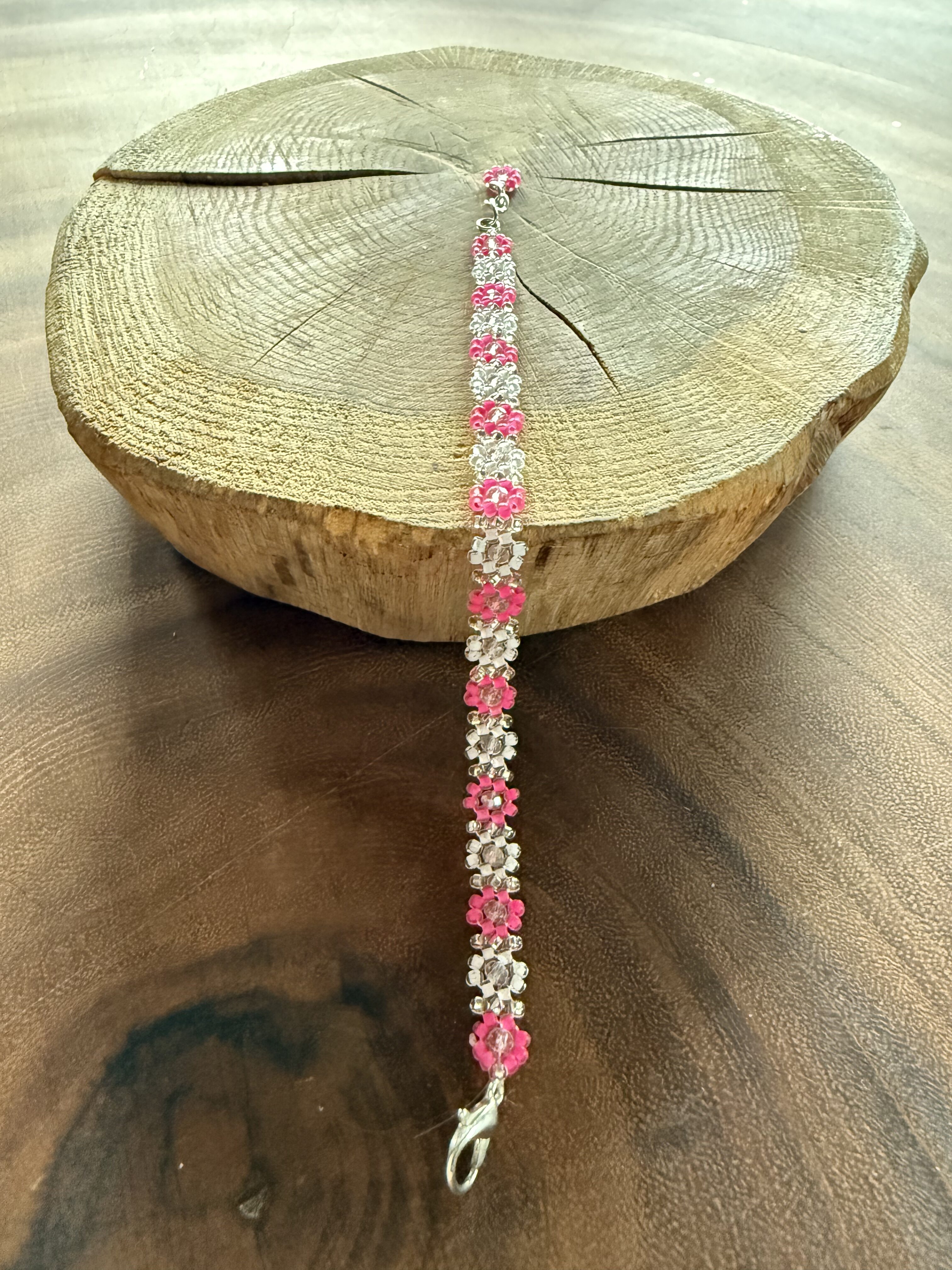 Kwiatuszkowa bransoletka z koralików (biało-różowa)