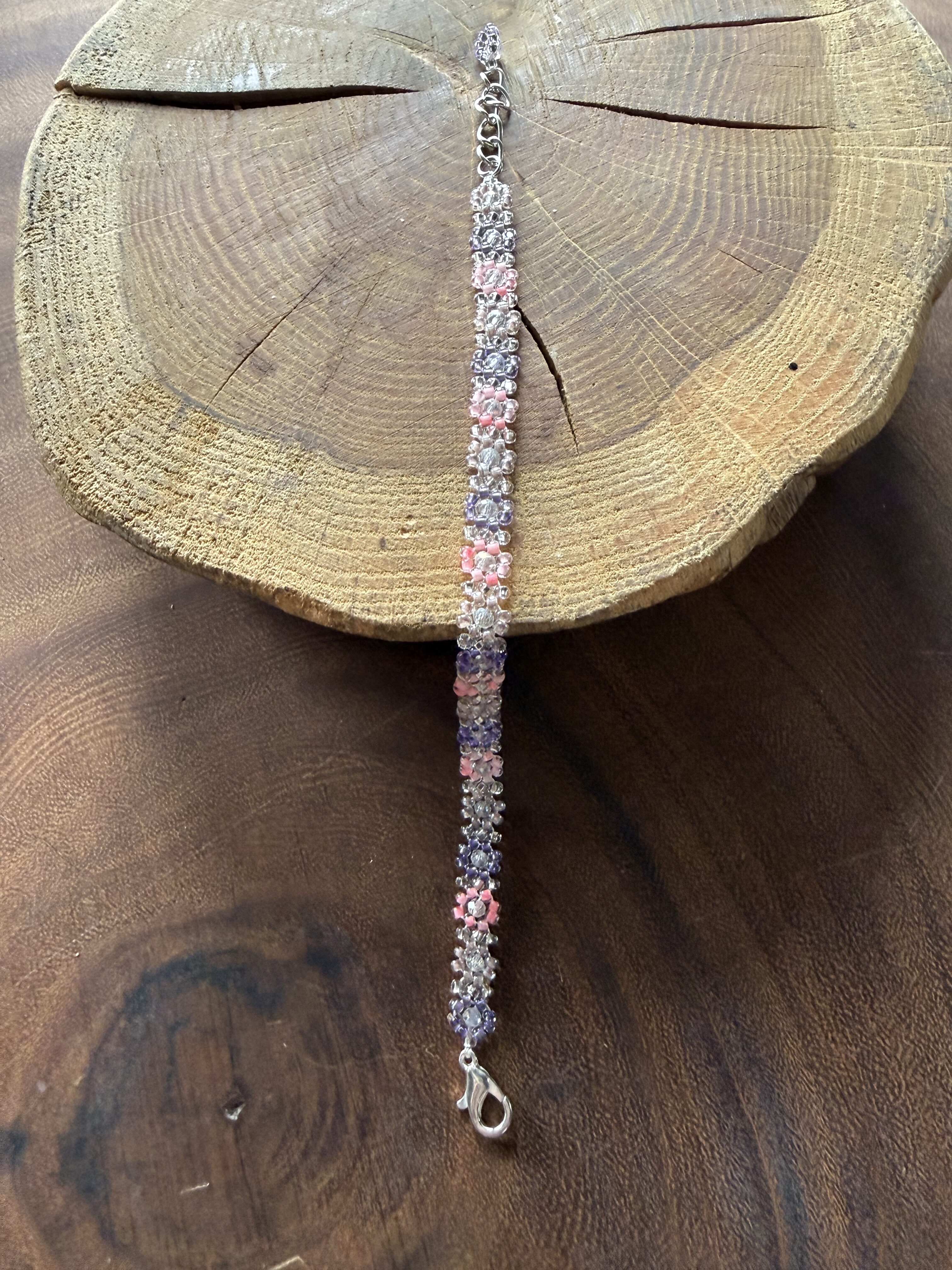 Kwiatuszkowa bransoletka z koralików (fiolateowo-różowa)