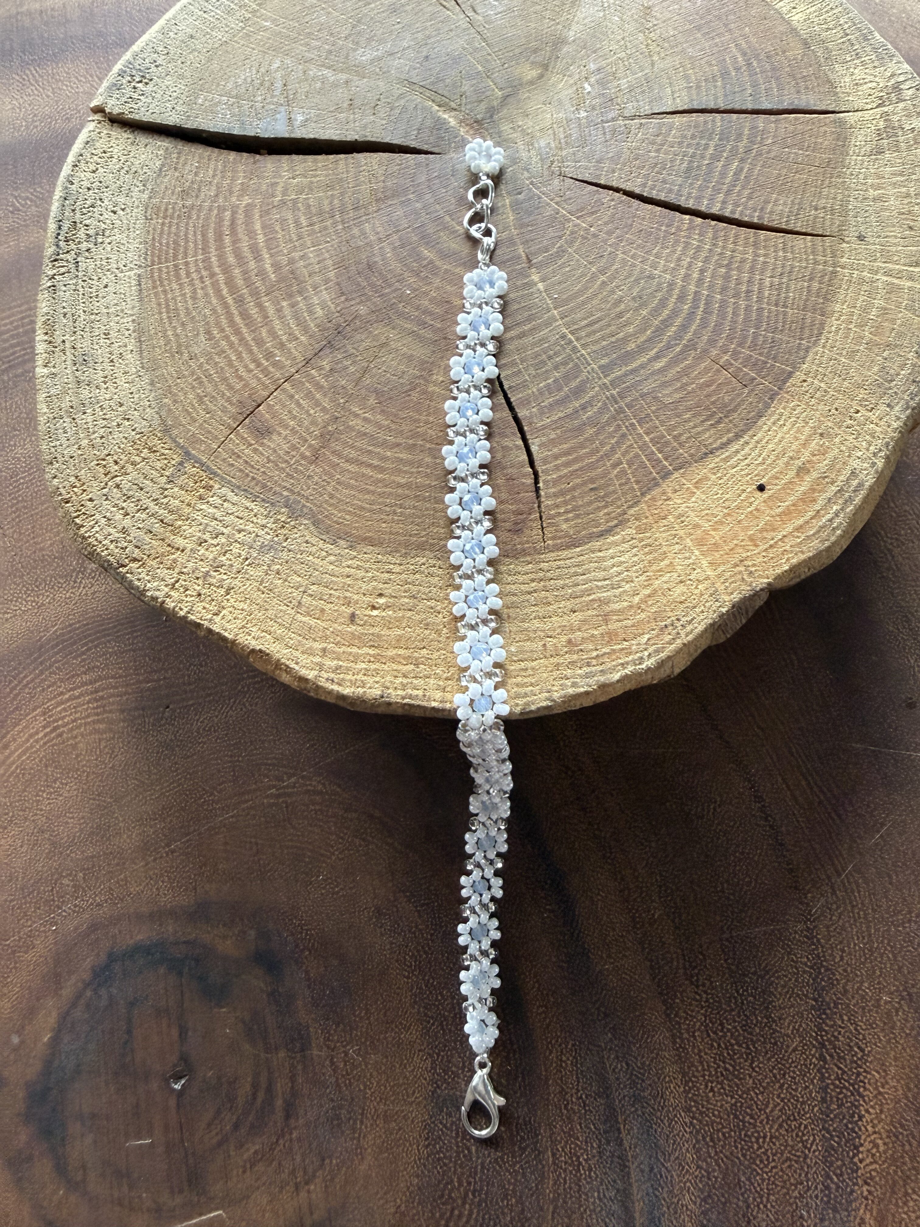 Kwiatuszkowa bransoletka z koralików w kolorze białym