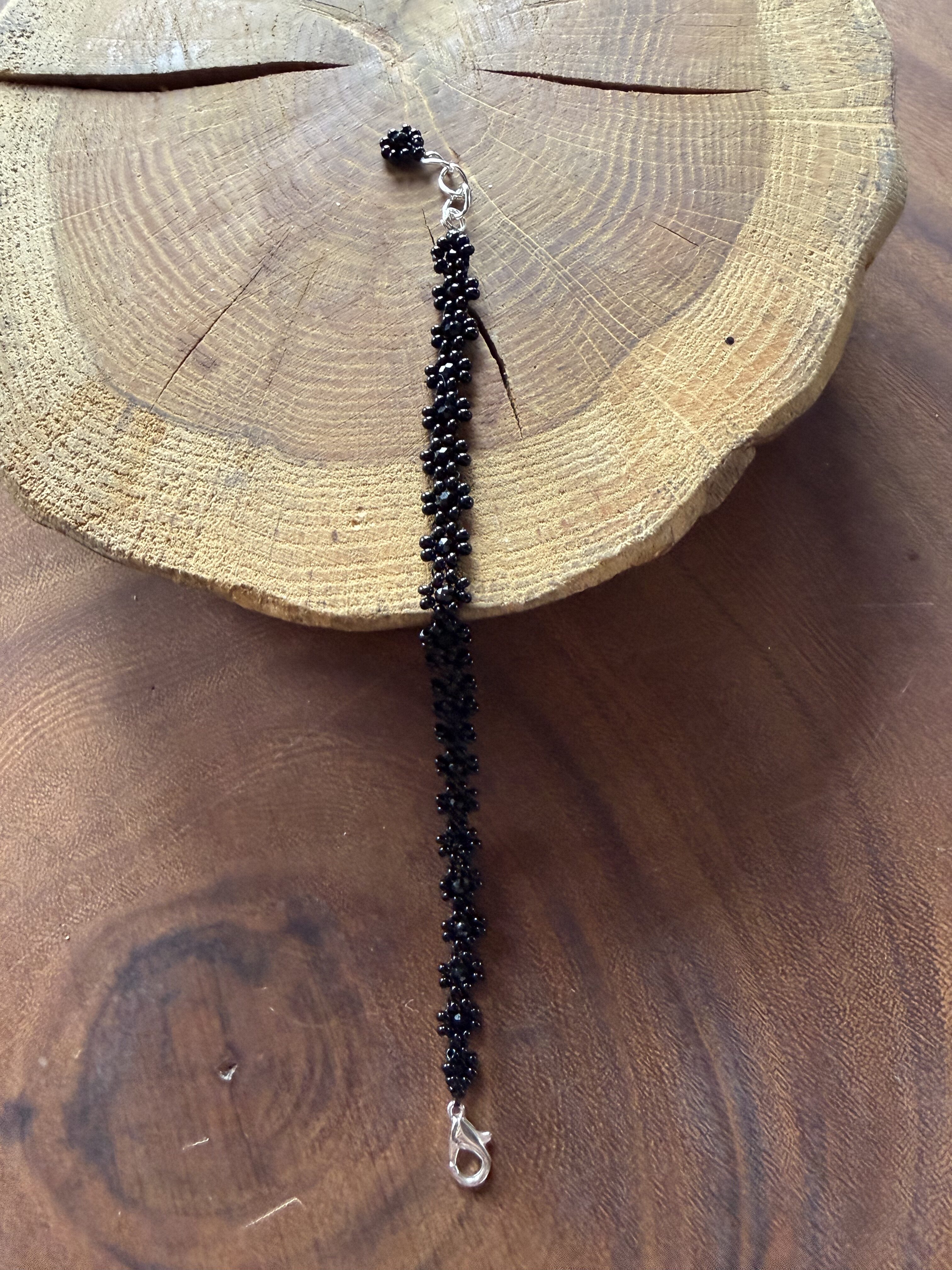 Kwiatuszkowa bransoletka z koralików w kolorze czarnym