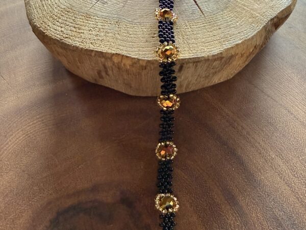 Kryształkowa bransoletka z koralików (czarno-złota)