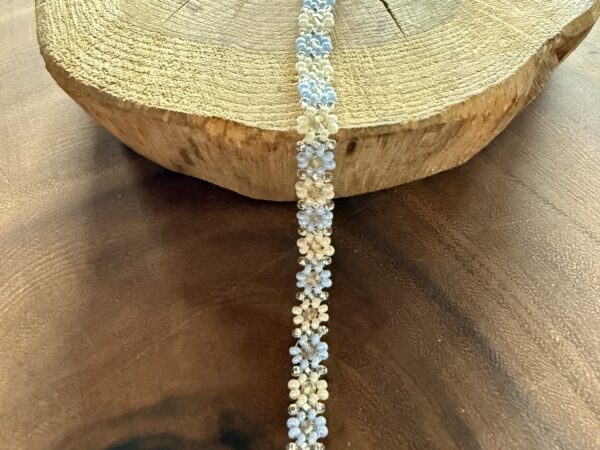 Kwiatuszkowa bransoletka mleczno-niebieska