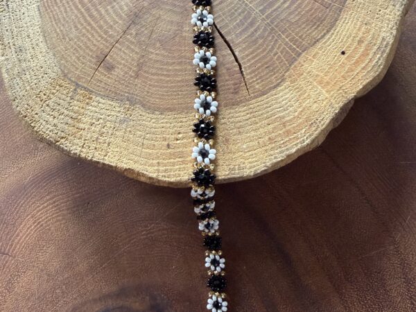 Kwiatuszkowa bransoletka (czarno-biała)