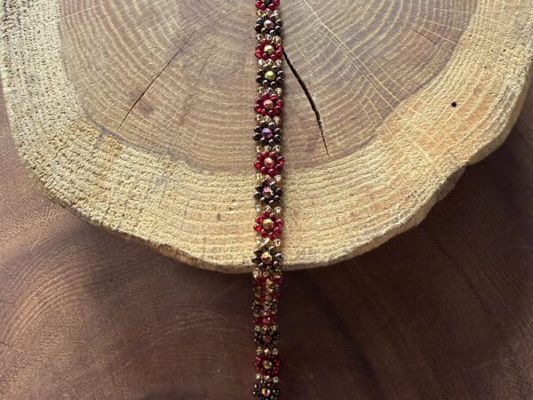 Kwiatuszkowa bransoletka w kolorze starego złota z bordowym
