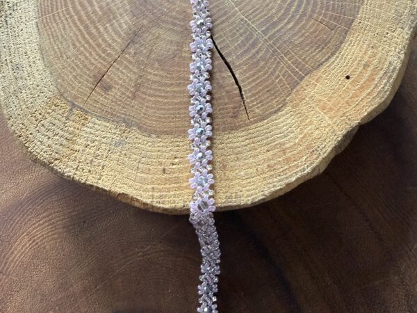 Kwiatuszkowa bransoletka z koralików (biało-różowa)