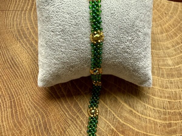 Zielona bransoletka ze złotymi oczkami